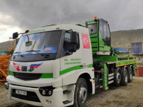 38 metr dikeydede bom uzunluğu, çift kırmalı, kasa açılır, halat tanburlu.
