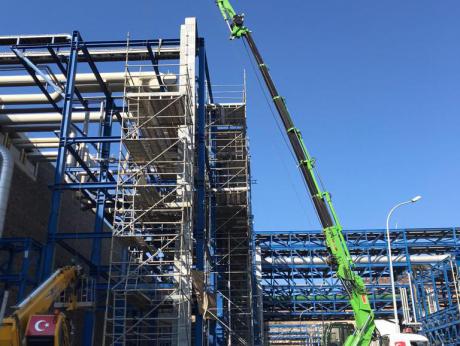 38 metr dikeydede bom uzunluğu, çift kırmalı, kasa açılır, halat tanburlu.