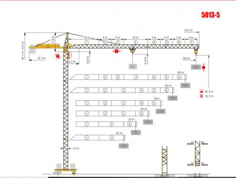 грузоподьемность на конце стрелы 1.3т