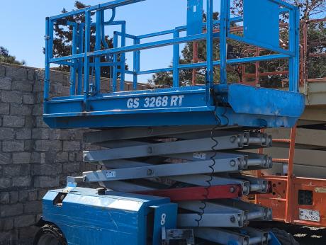 İş hündürlüyü 8 metr və 12 metr olan dizel mühərrikli qayçı tipli platformaların satışı. GS 3268