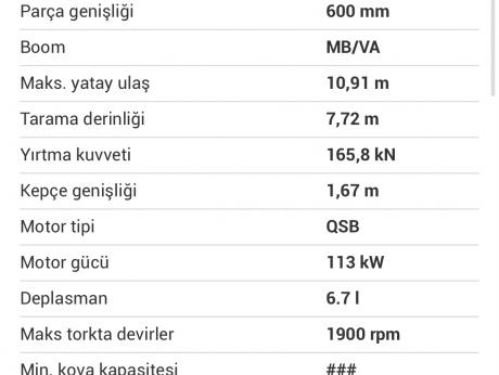 EKSKAVATOR 210 LC 7A Texnikanın göstəriciləri şəkildə dərc olunub.