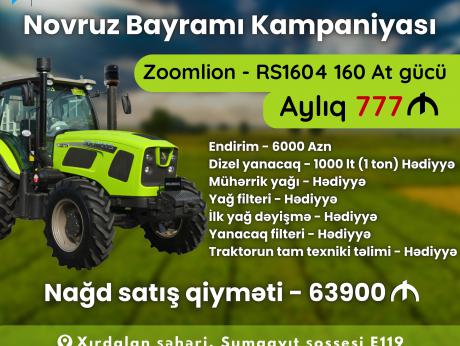 ,,Zoomlion,, markasını hər zaman dünyanın ən qabaqcıl kənd təsərrüfatı texnikalrının arasında görmək mümkündür.Şirkət kənd təsərrüfatı texnikalarının və avadanlıqlarının istehsalında Çinin 1 nömrəli markasıdır.Siz nağd və lizinq yolu ilə 40% dövlət güzəştindən yararlanaraq 60 ayadək bu texnikalara sahib ola bilərsiniz.Texniki vasitələrin satışını və servis xidmətləri,,Zoomlion ,, markasının ölkəmizdəki rəsmi tərəfdaşı ,,AZARTRAC,, .şirkəti tərəfindən həyata keçrilir.