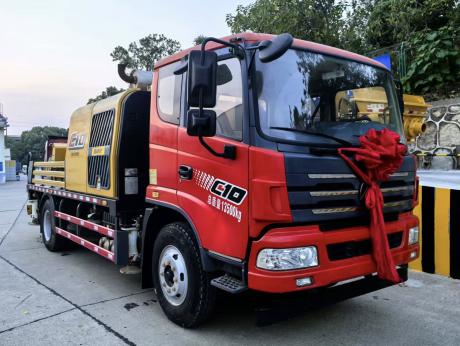 Sabit beton pompası , yer pompası şassi üzərində.